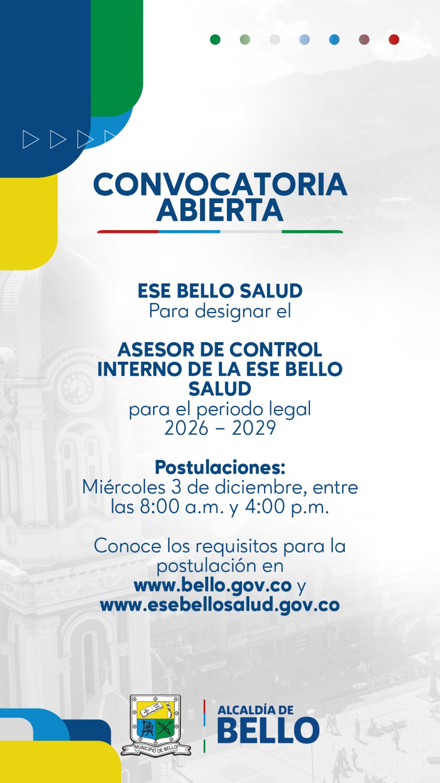 CONVOCATORIA PÚBLICA PARA LA DESIGNACIÓN DEL ASESOR DE CONTROL INTERNO DE LA ESE BELLO SALUD PARA EL PERIODO LEGAL 2026-2029
